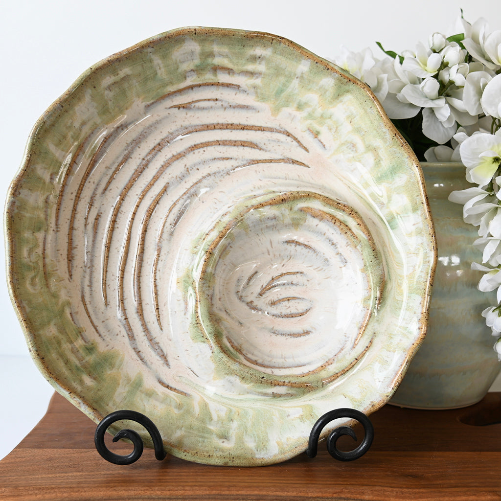 Each unique piece of Etta B Pottery is handcrafted and meticulously hand painted. The beautiful glazes provide a color palate sure to coordinate with any décor. The distressed and antique accents on these exquisite textures makes each piece a treasure. Though similar, no two pieces are just alike.