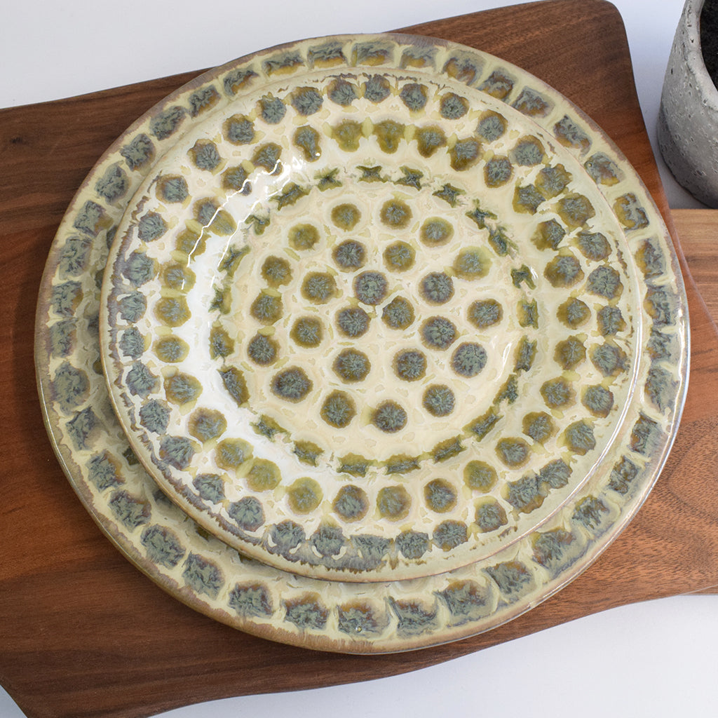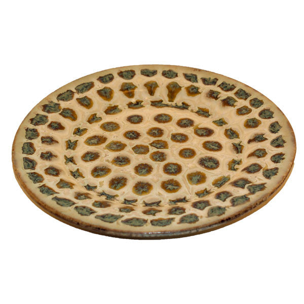 Good Earth's appealing colors and textures are sure to complement every room in your home. One-of-a-kind pieces are truly works of art and will dress up more than your dining table. Patterns and pieces are designed to be mixed and matched. Measures 9" in diameter. Dine with nature's perfect palette! With its unique style and eye-catching craftsmanship, this plate will be sure to embellish your aesthetic.
