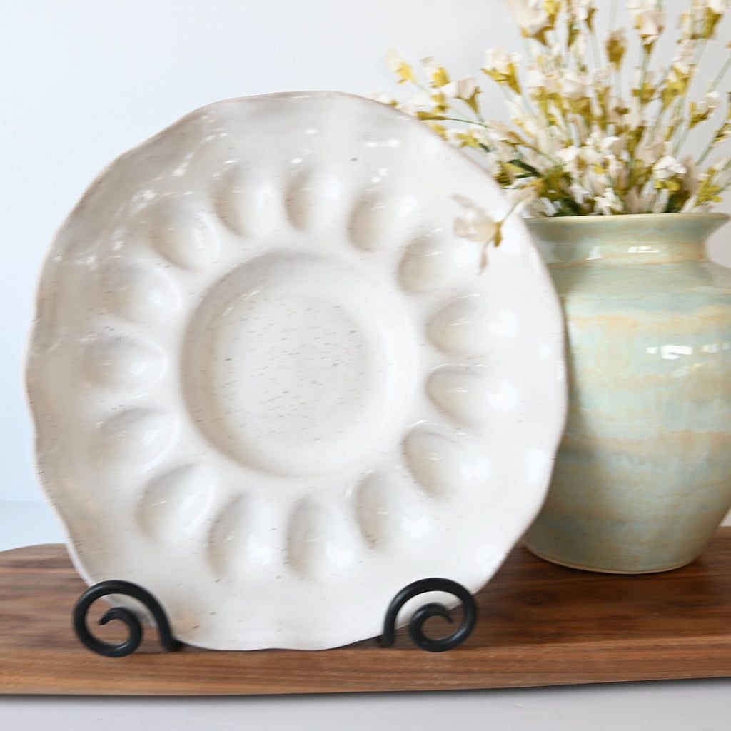 Eat in style with this handmade Handcrafted Egg Plate! This beautiful, one-of-a-kind plate is perfect for serving eggs, entertaining guests, and making breakfasts even more delicious. Dishwasher and oven safe, this egg plate is all you need to show off your cooking skills!
