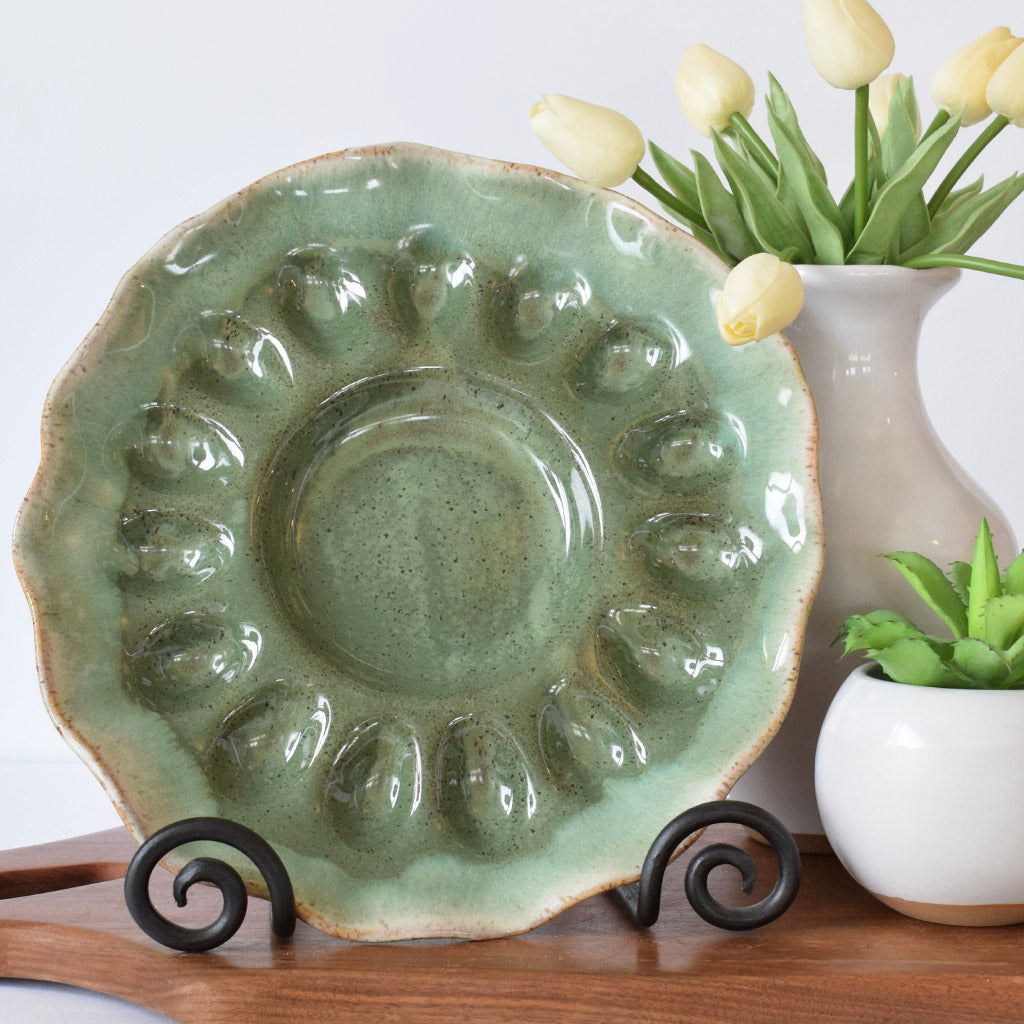 Eat in style with our handmade Handcrafted Egg Plate! This beautiful, one-of-a-kind plate is perfect for serving eggs, entertaining guests, and making breakfasts even more delicious. Dishwasher and oven safe, this egg plate is all you need to show off your cooking skills!