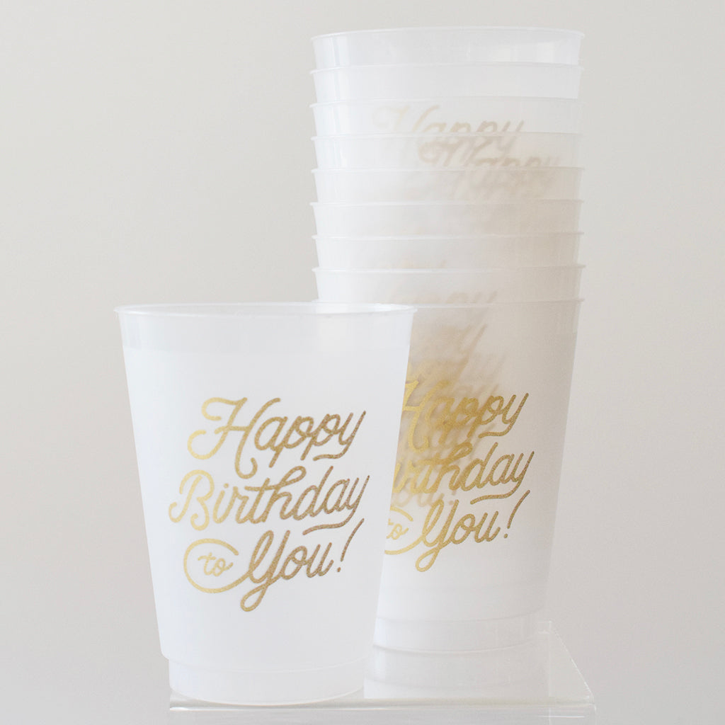 Show everyone your birthday spirit! These plastic frosted cups are perfect for a party or gifting and come 10 to a sleeve, 16 oz. capacity, Dishwasher safe (top rack). Happy sipping!