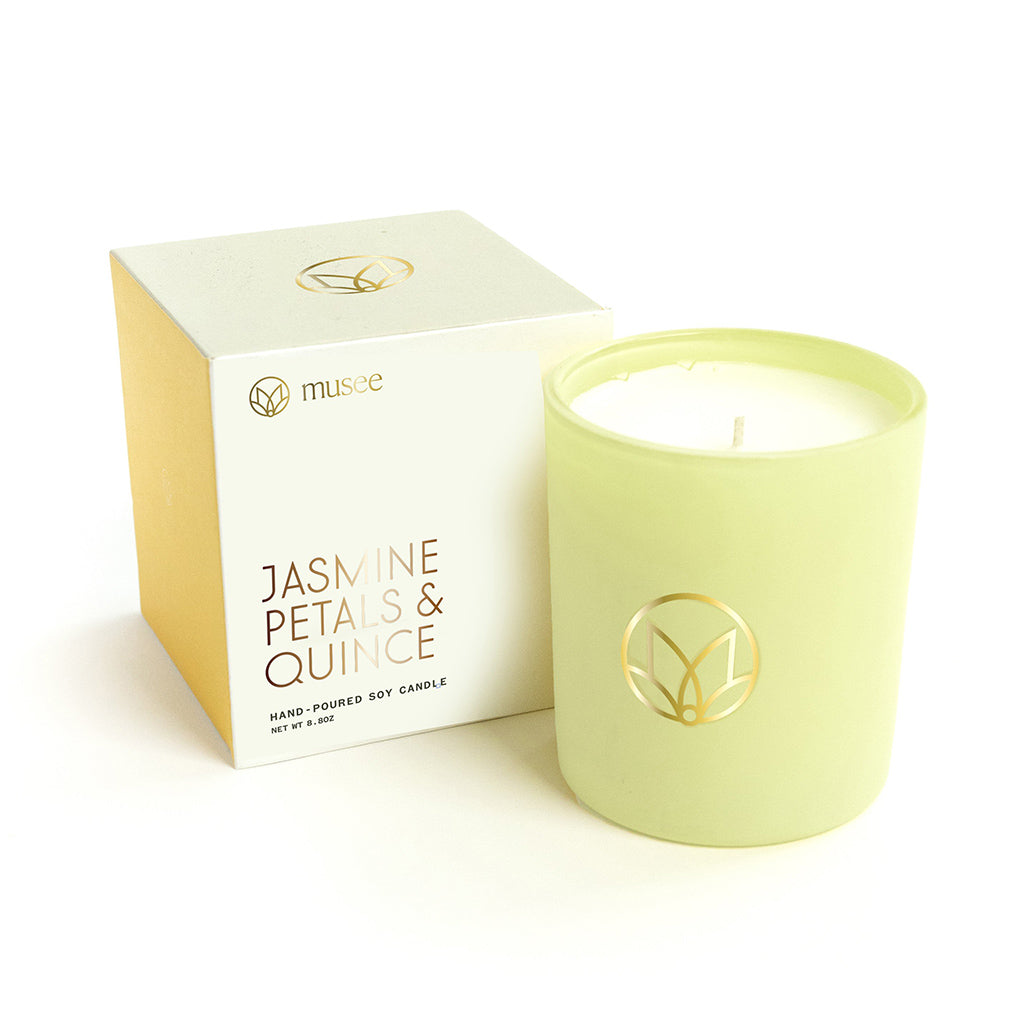 As you light the candle, experience the alluring and intoxicating fragrance of jasmine, which will envelop your space in a romantic and serene atmosphere. The refreshing and aquatic notes of water lotus will then emerge, creating a calming and peaceful quality to the scent. Enclosed with a poignant quote by Maya Angelou, "Nothing can dim the light that shines from within," each flicker of this candle reminds you that your inner light remains resilient and radiant.