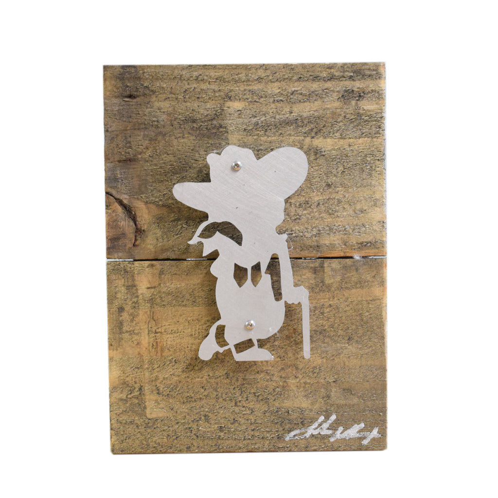 Greenwood native John Willcoxon is inspired by his love of old things and repurposes them into new beautiful works of art. Each handmade piece is unique and one of a kind. This piece measures 9"x6" and comes ready to hang.