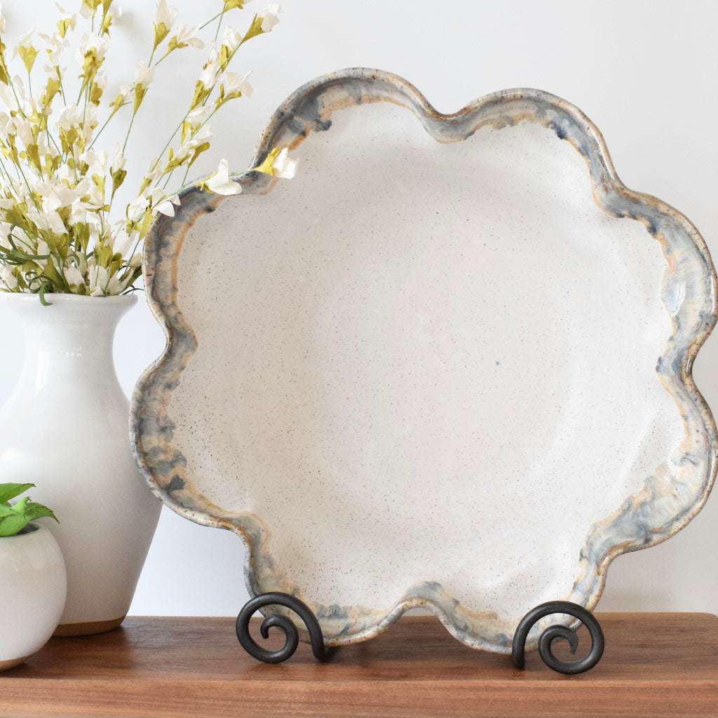 Each unique piece of Etta B Pottery is handcrafted and meticulously hand painted. The beautiful glazes provide a color palate sure to coordinate with any décor. The distressed and antique accents on these exquisite textures makes each piece a treasure. Though similar, no two pieces are just alike. Measures 15"x 5.5".
