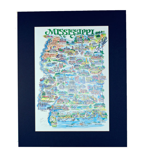 Mississippi artist Linda Theobald illustrates towns, landmarks, and traditions of Mississippi with precise detail and a true artist's eye. Prior to beginning her drawing, Linda extensively researches to select the landmarks and customs that best depict her subject. Her medium in the pen and ink and watercolor, and the average time to create the minute detail in her original artwork is in excess of 100 hours. Each piece of artwork is signed and numbered. This piece measures 16"x20" and is matted and ready to be framed.