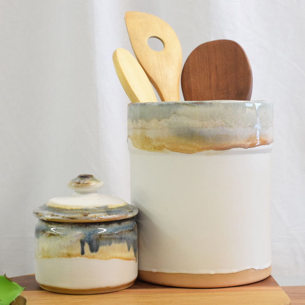 Each unique piece of Etta B Pottery is handcrafted and meticulously hand painted. The beautiful glazes provide a color palate sure to coordinate with any decor. The distressed and antique accents on these exquisite textures makes each piece a treasure. Though similar, no two pieces are just alike.