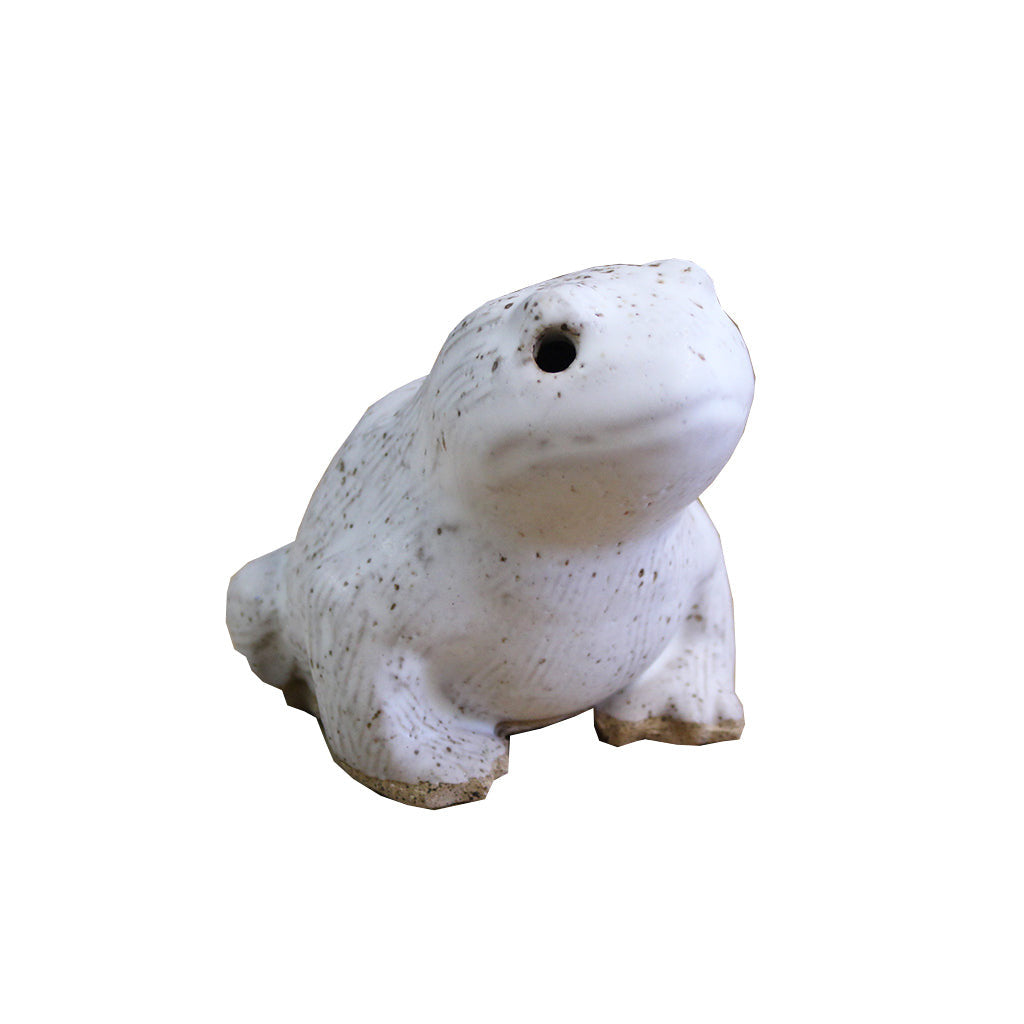 This medium-sized frog figurine features a smooth white glaze finish that highlights its detailed craftsmanship. Its elegant simplicity fits seamlessly into a variety of decor styles, making it an ideal accent piece for shelves, desks, or mantel displays. Crafted to blend both charm and durability, it offers a refined touch to any space.