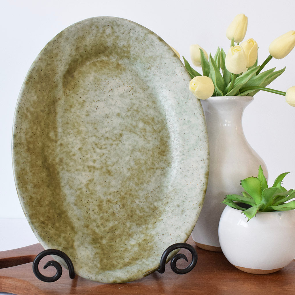 The rich earth tones of the Mississippi Delta are captured in the glazes and textures of this pottery, crafted with care by the Woods Brothers of Mound Bayou, MS. This piece measures 14 inches 5 inches.