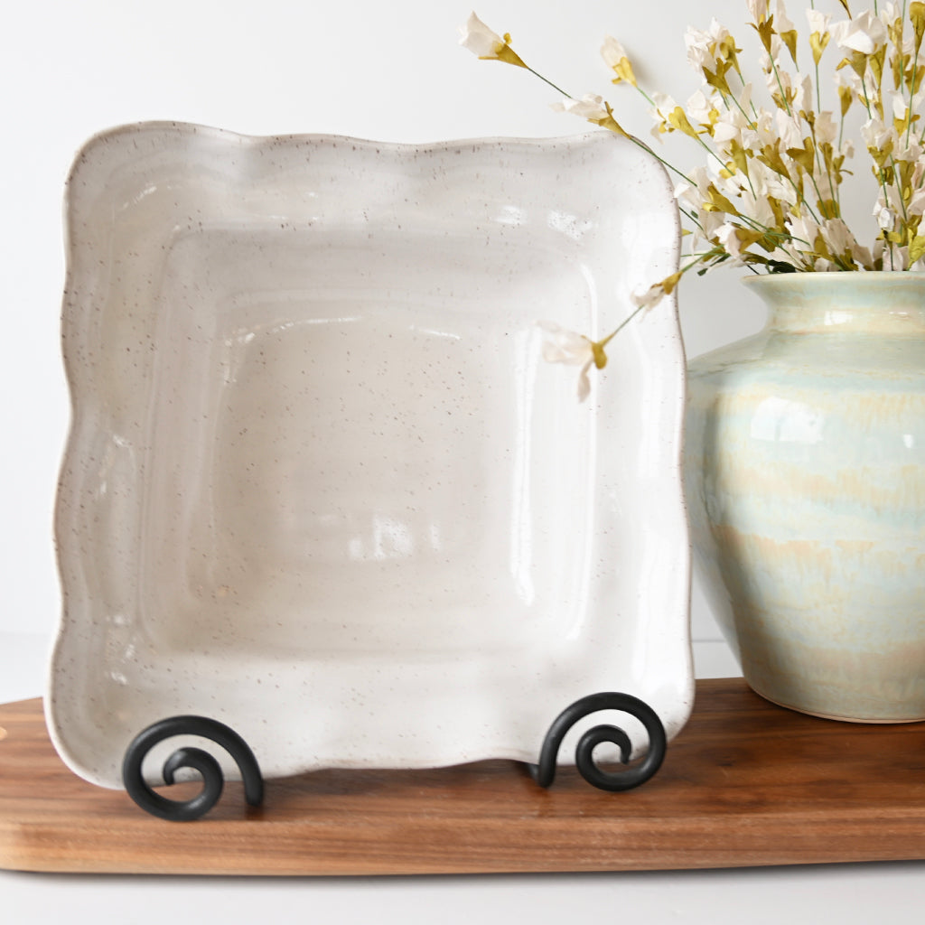 Add a touch of art to your dining experience with this Medium Square Bowl in Eyelet White! Its pottery construction makes it both dishwasher and oven safe, so you can easily serve and entertain with ease! Who knew a square bowl could be so sophisticated?!