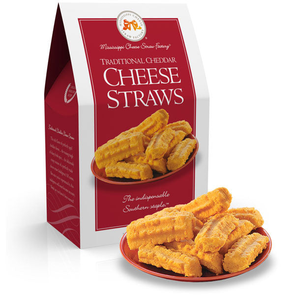 With pride, we share our unrivaled Mississippi Cheese Straws. Made from a cherished family recipe using the finest ingredients, these spicy, cheddar morsels are a staple of all kinds of Southern soirees, cocktail hours to baby showers, living rooms to board rooms. Their small town goodness tantalizes even the most cosmopolitan taste buds. 3.5oz.