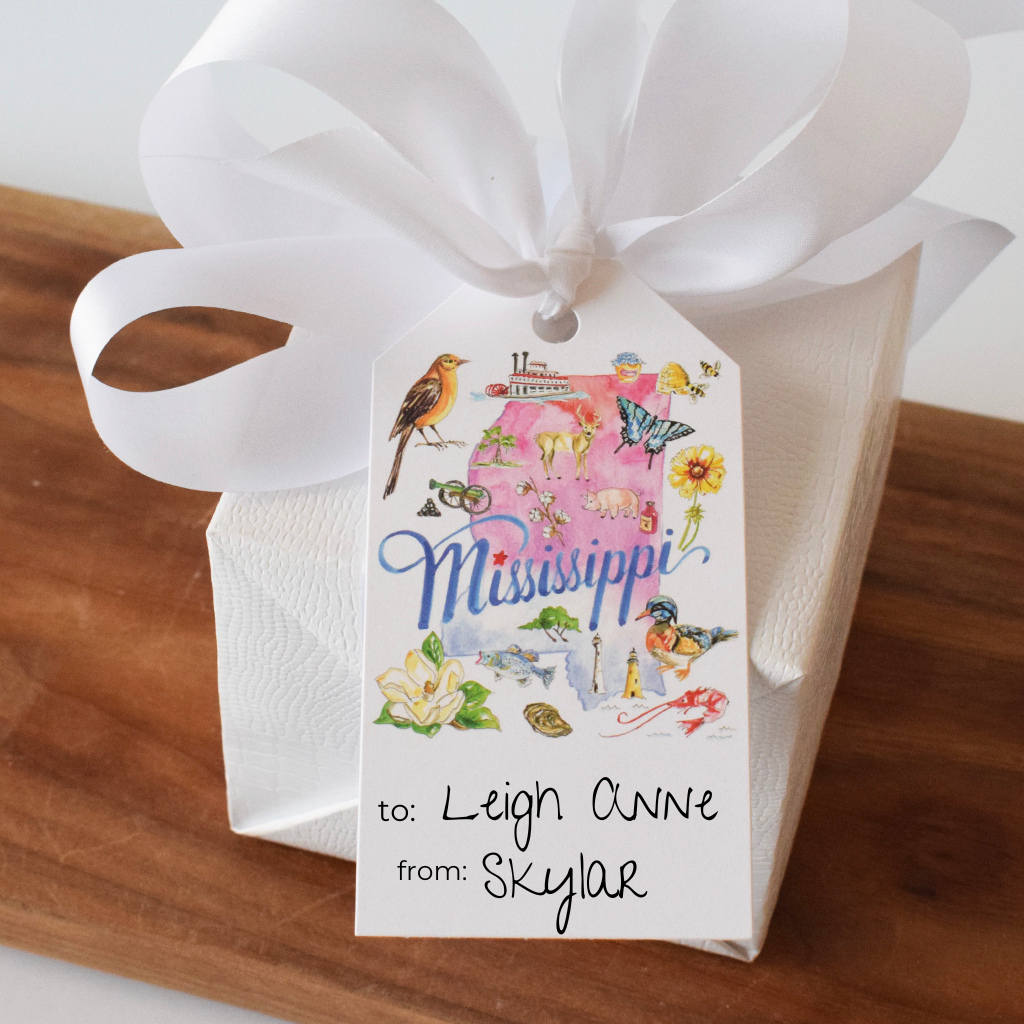 Elevate your gift-giving game with these Mississippi Icons Gift Tags. This set includes 10 beautifully crafted tags and 10 ties, making it effortless to add a personal touch to your presents. Say goodbye to plain wrapping and impress your loved ones with these elegant tags.