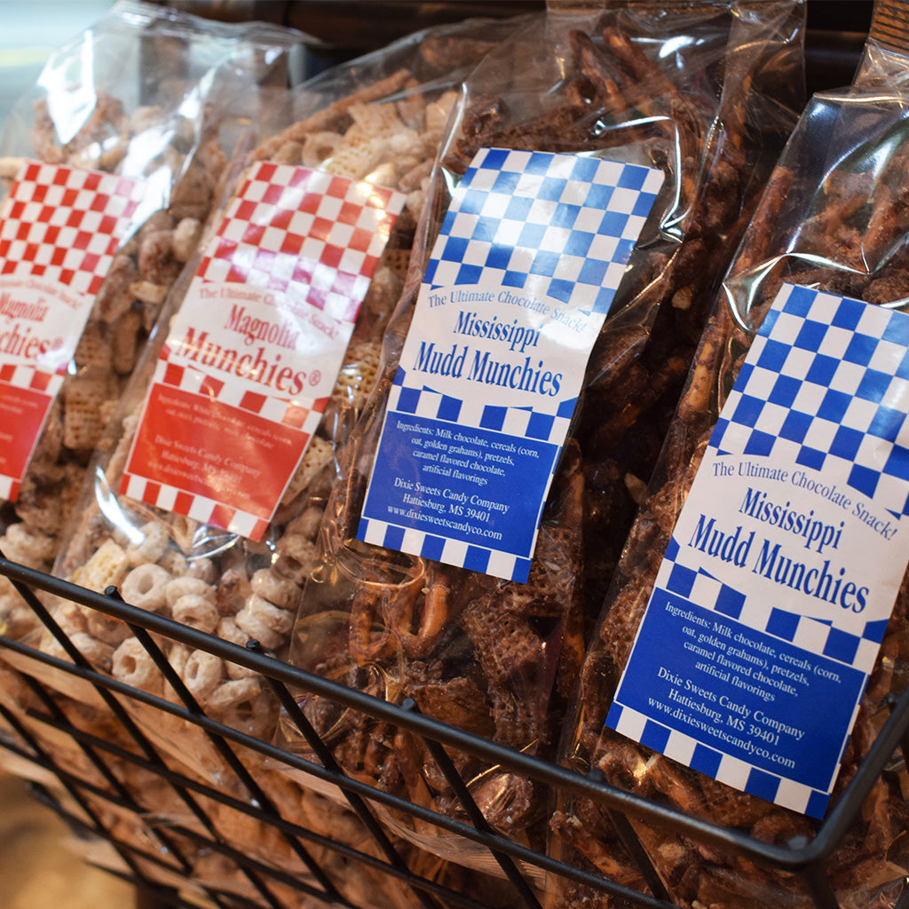 Trash mix with nuts coated in creamy milk chocolate. 4 oz. bag. A perfect addition to a basket.