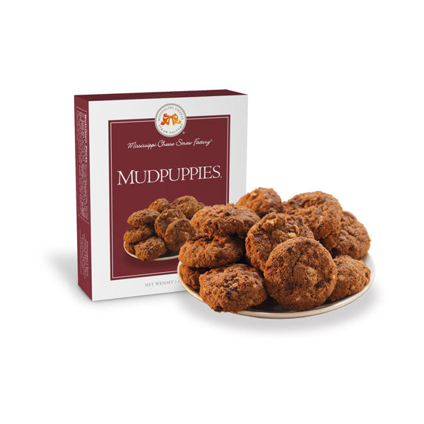 Chock full of fine chocolate chips, sweet cream butter, pure cocoa, flaked oats and pecans, Mississippi MudPuppies are as rich as the Mississippi mud inspiring their name. They are a direct descendant of the recipe created by the Delta matron who whipped up batches to silence her rambunctious youngsters. Word spread and soon her cookies were the favorites of bake sales, church bazaars and town fairs. So go ahead indulge your chocolatey cravings once and for all. One bite and you'll beg for more. 1 oz.