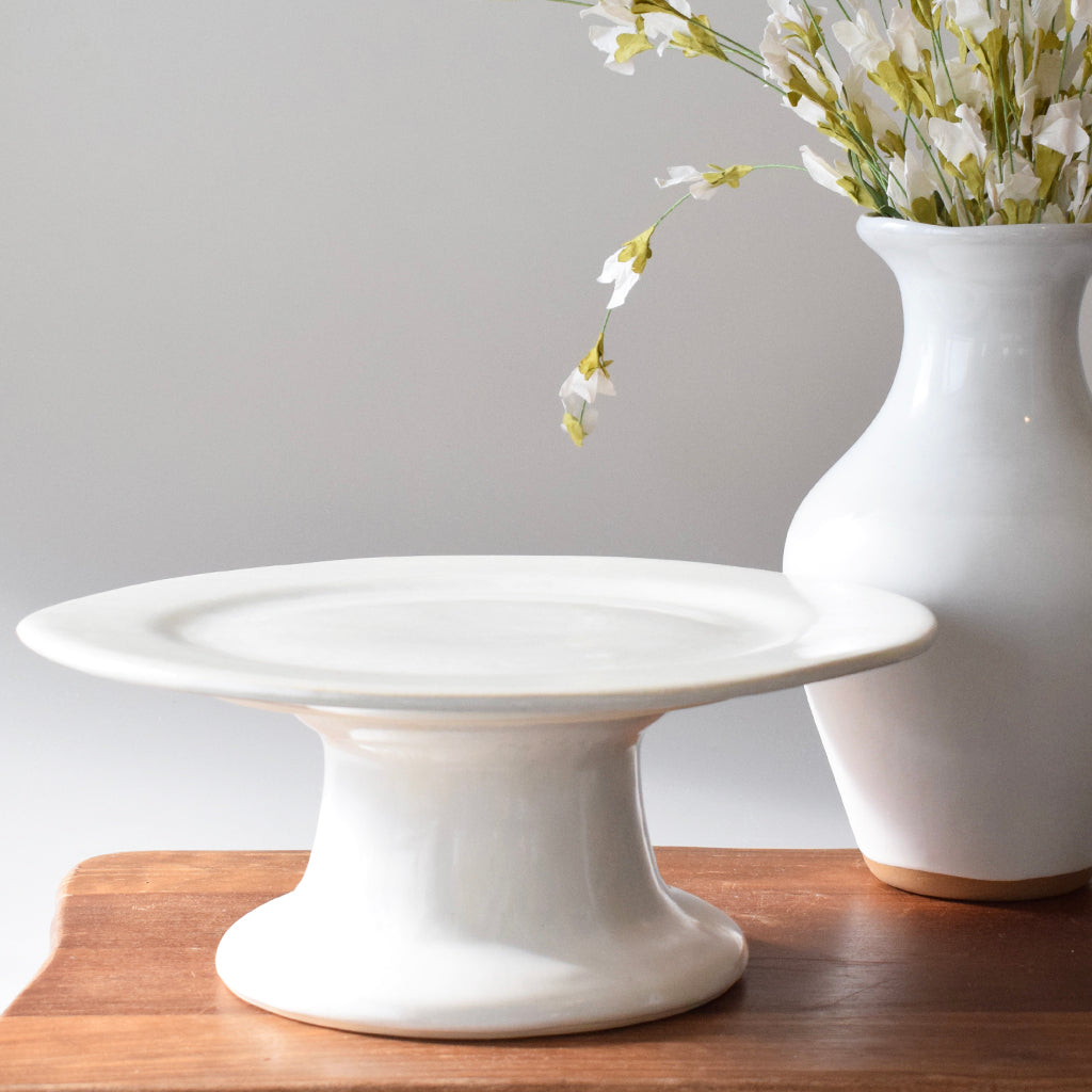 Good Earth has got dreamy colors and textures to suit any abode. Our Moonstone set has all the soft hues - ivory, cream, white, and little reflects of green - for a cozy feel that'll fit right in. One-of-a-kind pieces are a veritable feast for the eyes, easily dressing up much more than your dinner table. Mix, match, and make a masterpiece - this cake stand measures 11"x4.5".