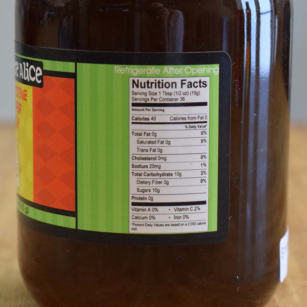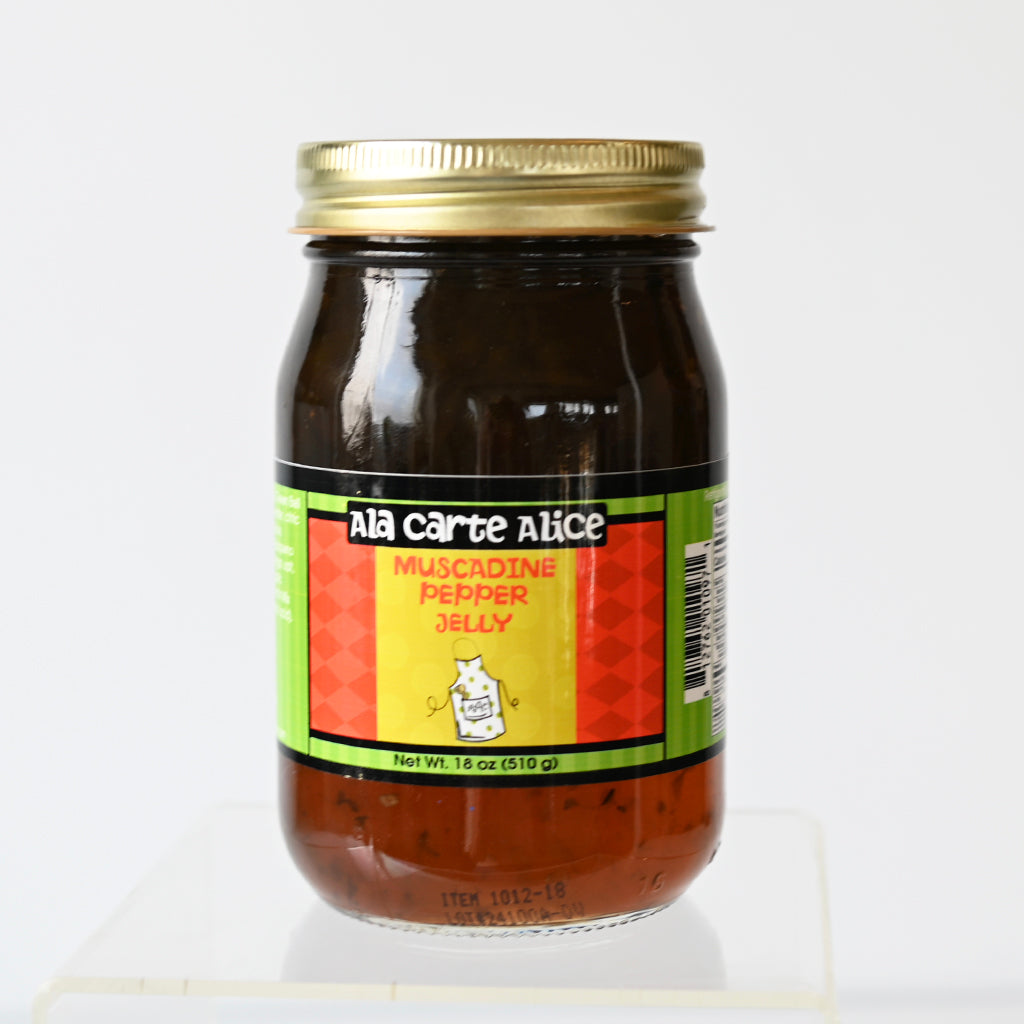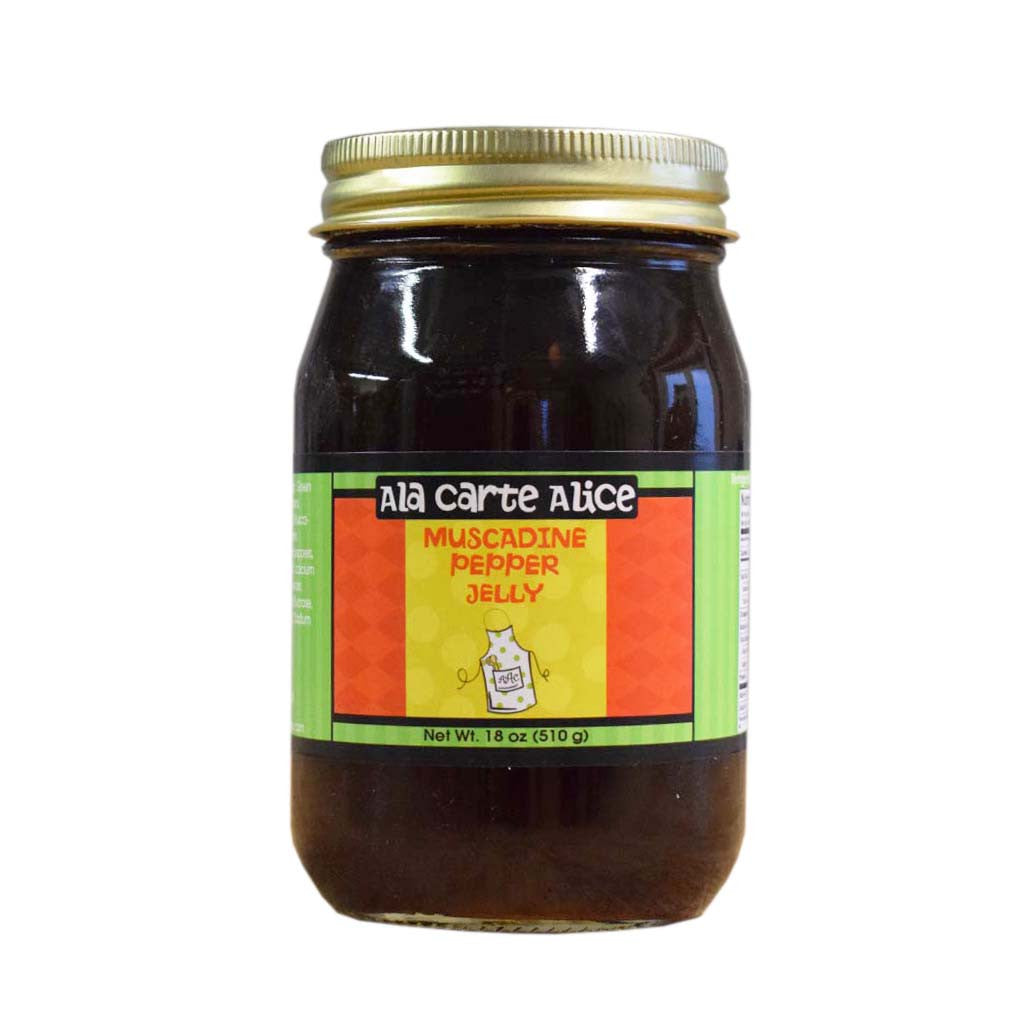 Ingredients: sugar, green bell peppers (peppers, water, citric acid), muscadine juice, jalapeño peppers (jalapeño peppers, water, vinegar, salt, calcium chloride, garlic powder, spices), pectin mix (sucrose, pectin, citric acid), sodium citrate.