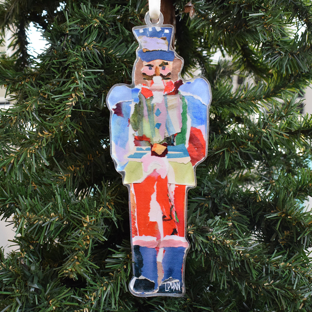 Celebrate Christmas with the Nutcracker Acrylic Ornament, created by artist Lauren Dunn. Featuring a classic nutcracker design and crafted from high-quality acrylic, this unique piece adds festivity to any holiday décor. Measures 7"x2.5". Collect all 3 designs!