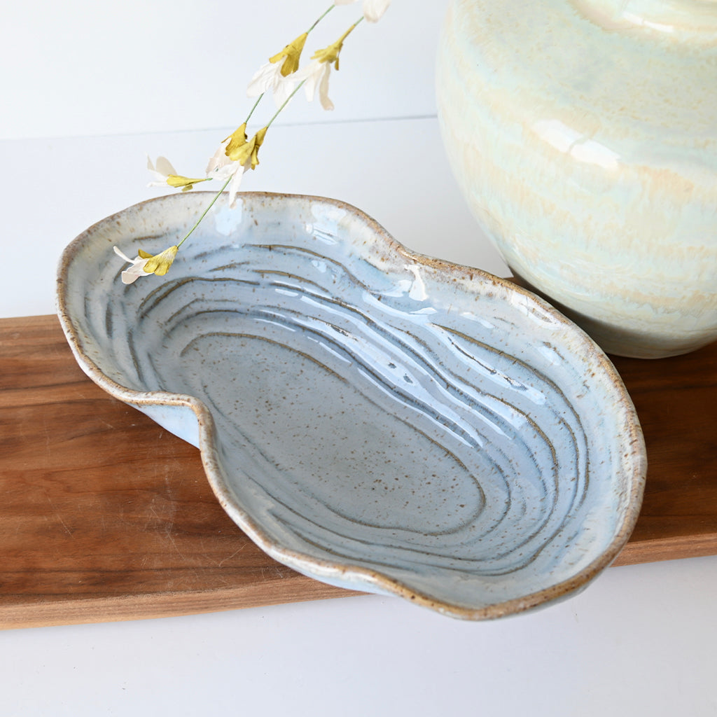 Each unique piece of Etta B Pottery is handcrafted and meticulously hand painted. This beautiful glaze is sure to coordinate with any décor. This versatile piece is the perfect size for an appetizer, desserts, or cheese tray & would make the perfect display piece, as well!