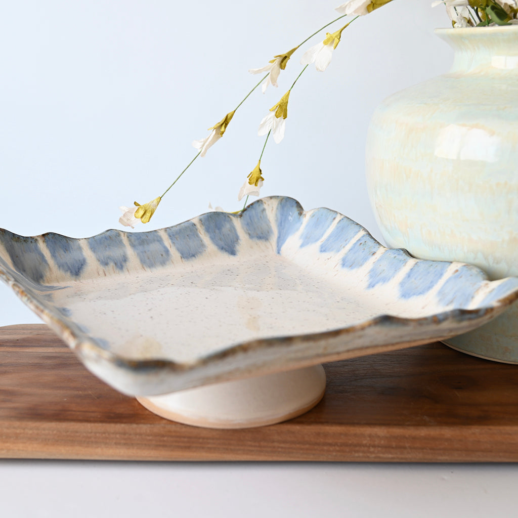 Take entertaining to new heights with the Petit Fours Pedestal! This pottery dessert stand is perfect for making a statement in the dining room, and is both dishwasher safe and durable enough to handle all the entertaining possibilities. Enjoy serving your treats on this unique and charming stand!