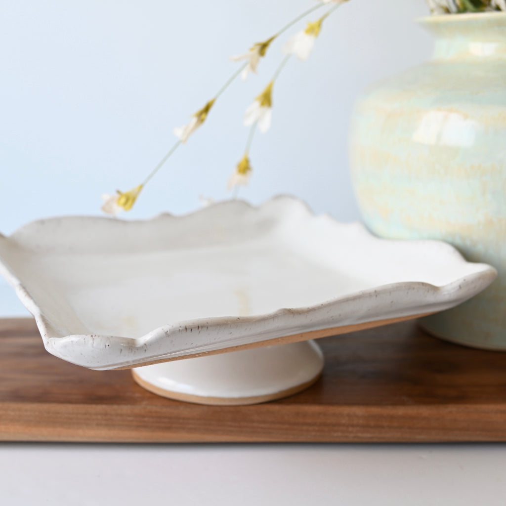 Take entertaining to new heights with the Petit Fours Pedestal! This pottery dessert stand is perfect for making a statement in the dining room, and is both dishwasher safe and durable enough to handle all the entertaining possibilities. Enjoy serving your treats on this unique and charming stand!
