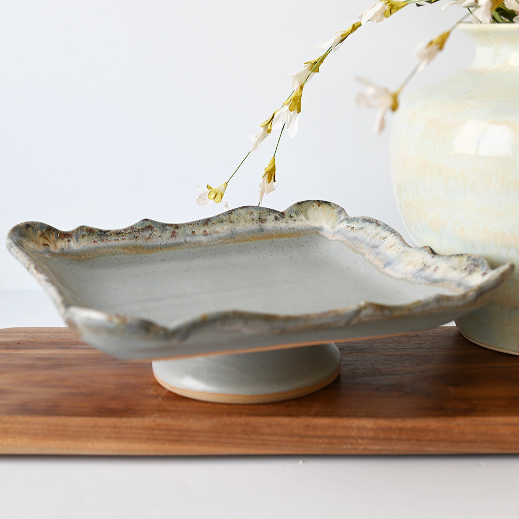 Take entertaining to new heights with the Petit Fours Pedestal! This pottery dessert stand is perfect for making a statement in the dining room, and is both dishwasher safe and durable enough to handle all the entertaining possibilities. Enjoy serving your treats on this unique and charming stand!
