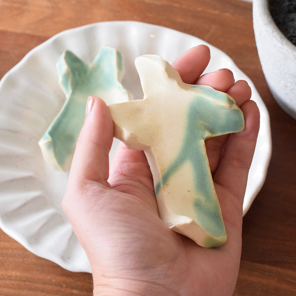 We are so excited to share the sweetest pottery prayer crosses with y'all! These handmade crosses are molded to fit perfectly in the palm of your hand. Let someone know you are thinking of them with this special gift!