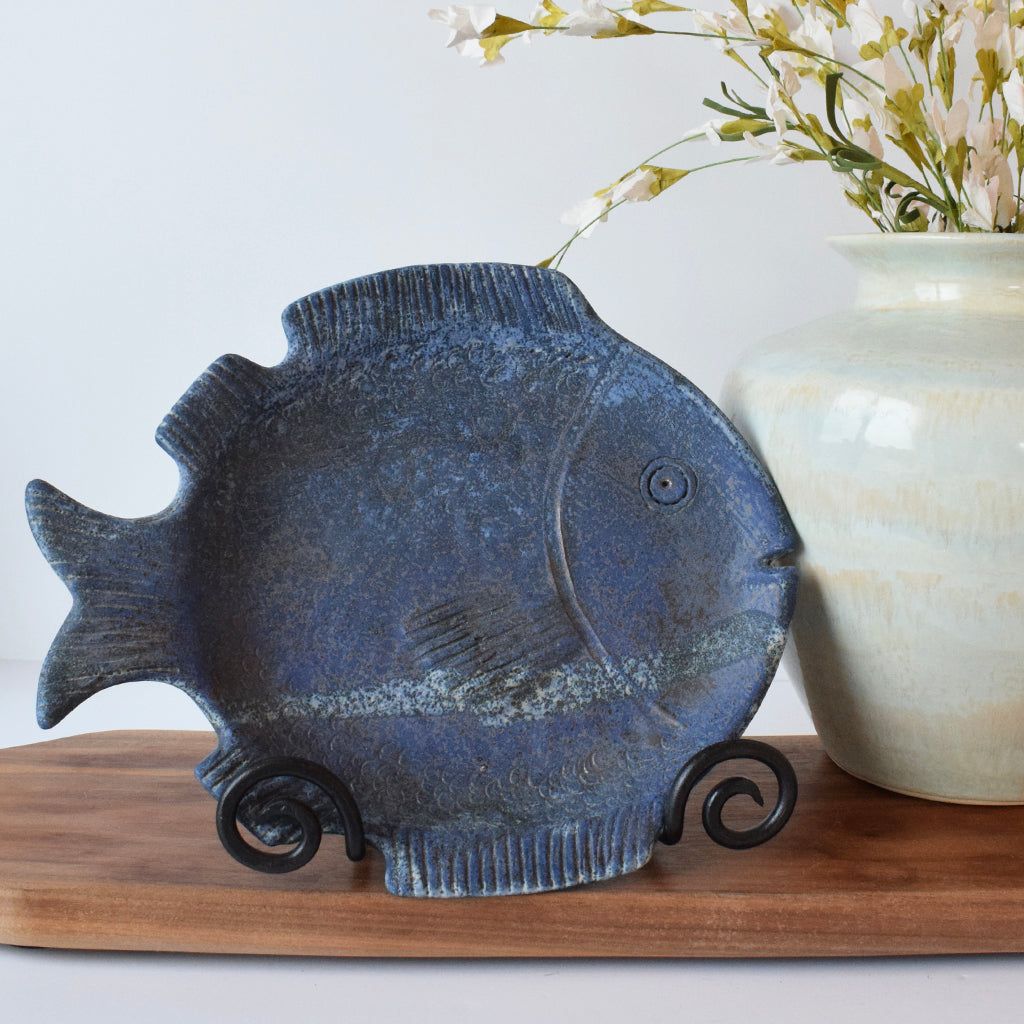 Add a splash of ocean charm to your table with the Puffy Fish Blue platter. Its rounded, puffy shape and vibrant blue glaze bring a whimsical touch to serving fish or seafood dishes. Perfect for making mealtime a little more fun and inviting, this platter brightens your dining experience while showcasing your favorite flavors in style.