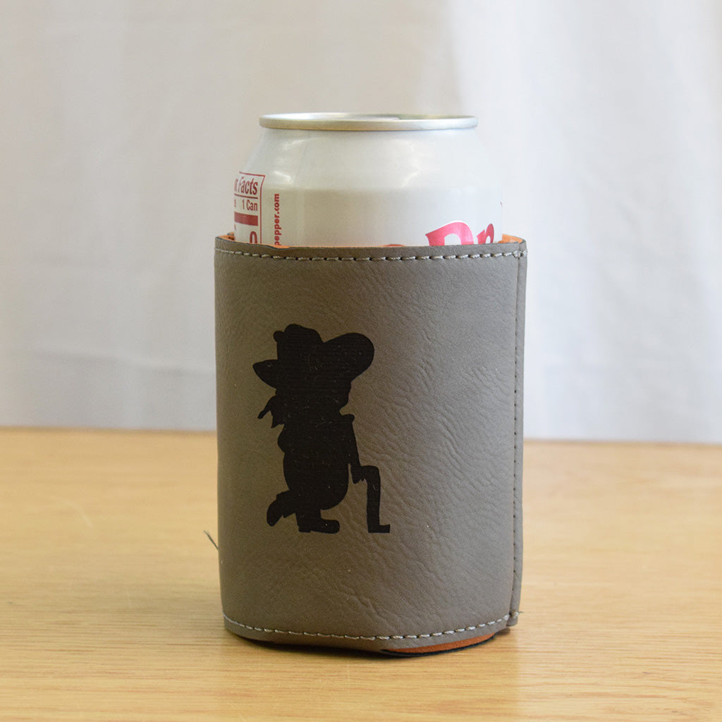 Tailgate in style with this premium leather coolie. Adorned with a silhouette of a rebel, you'll be the envy of all of your friends. Fits a standard sized can.