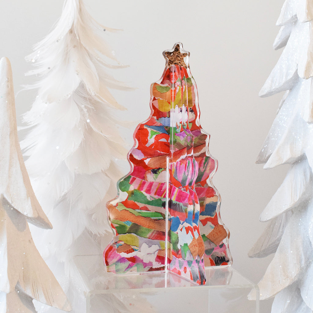 This Red 3-D Acrylic Christmas Tree from artist Lauren Dunn is a perfect holiday decoration. Crafted from durable acrylic, this 3-dimensional tree will bring a festive spirit to your home for seasons to come. Bring the joy of Christmas into your home for the holidays. Measures 7"x4".