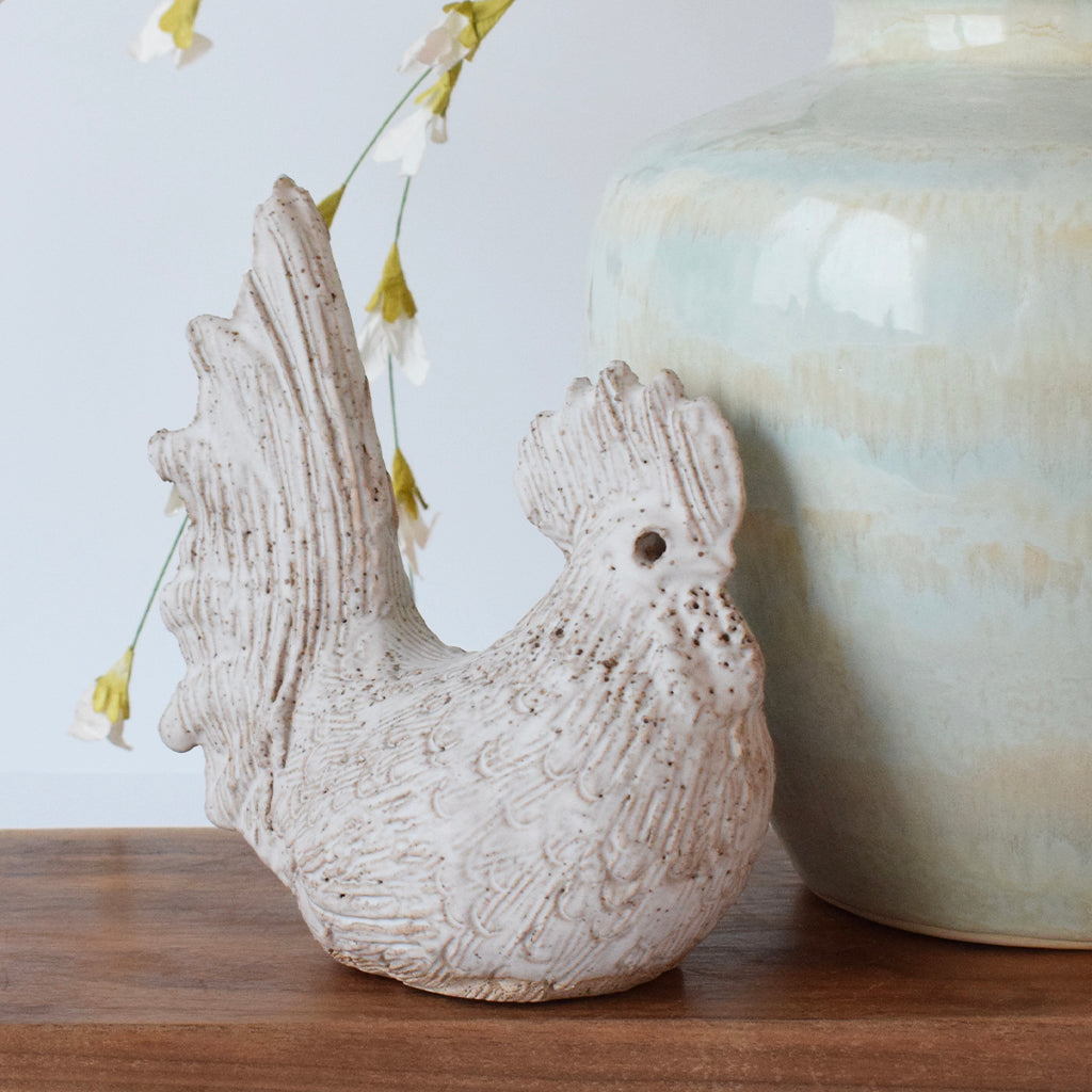 Add a splash of charm to your kitchen with the Rooster in White! This delightful piece brings a fun farmhouse vibe to your cooking space. Every kitchen should have a rooster—this one adds personality and a pinch of whimsy.