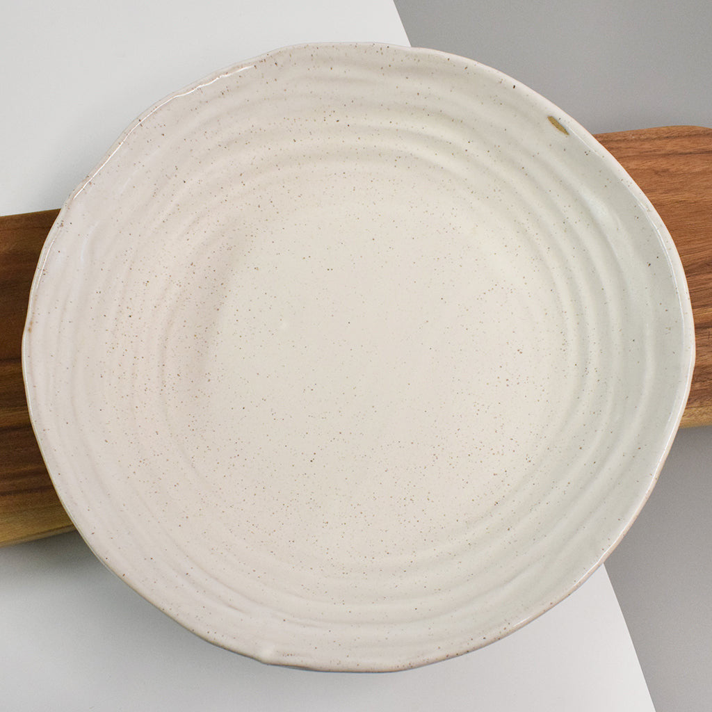 Each unique piece of Etta B Pottery is handcrafted and meticulously hand painted. The beautiful glazes provide a color palate sure to coordinate with any decor. The distressed and antique accents on these exquisite textures makes each piece a treasure. Though similar, no two pieces are just alike. Measures 12" in diameter and 2" deep.