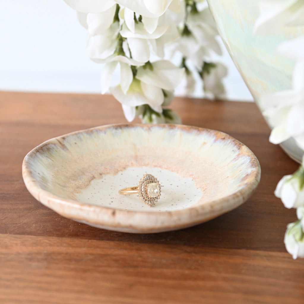 This sauce dish in the Cottonwood glaze is a beautiful addition to any place setting. Made with creative expertise, the beautiful glaze adds a touch of elegance to your table. Its unique design and glaze make it perfect for serving your favorite sauces, enhancing the dining experience for you and your guests.