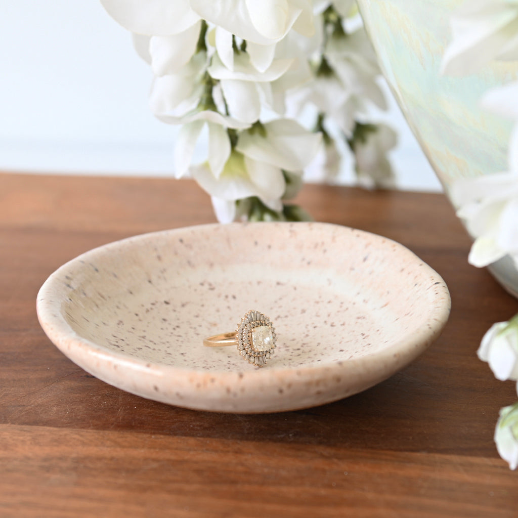 This sauce dish in the Dogwood glaze is a beautiful addition to any place setting. Made with creative expertise, the beautiful glaze adds a touch of elegance to your table. Its unique design and glaze make it perfect for serving your favorite sauces, enhancing the dining experience for you and your guests.