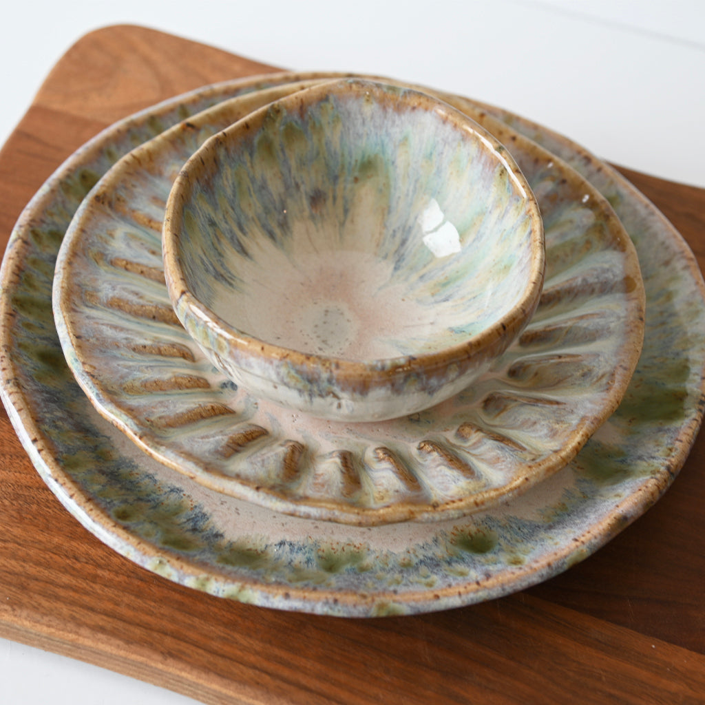 Each Etta B Pottery item is handmade and hand-painted with attention to detail. An array of glazes supplies a wide selection of colors to match any space. Distressed and vintage effects bring character to the individual pieces, making each a distinctive treasure. While each piece is similar, no two are alike.