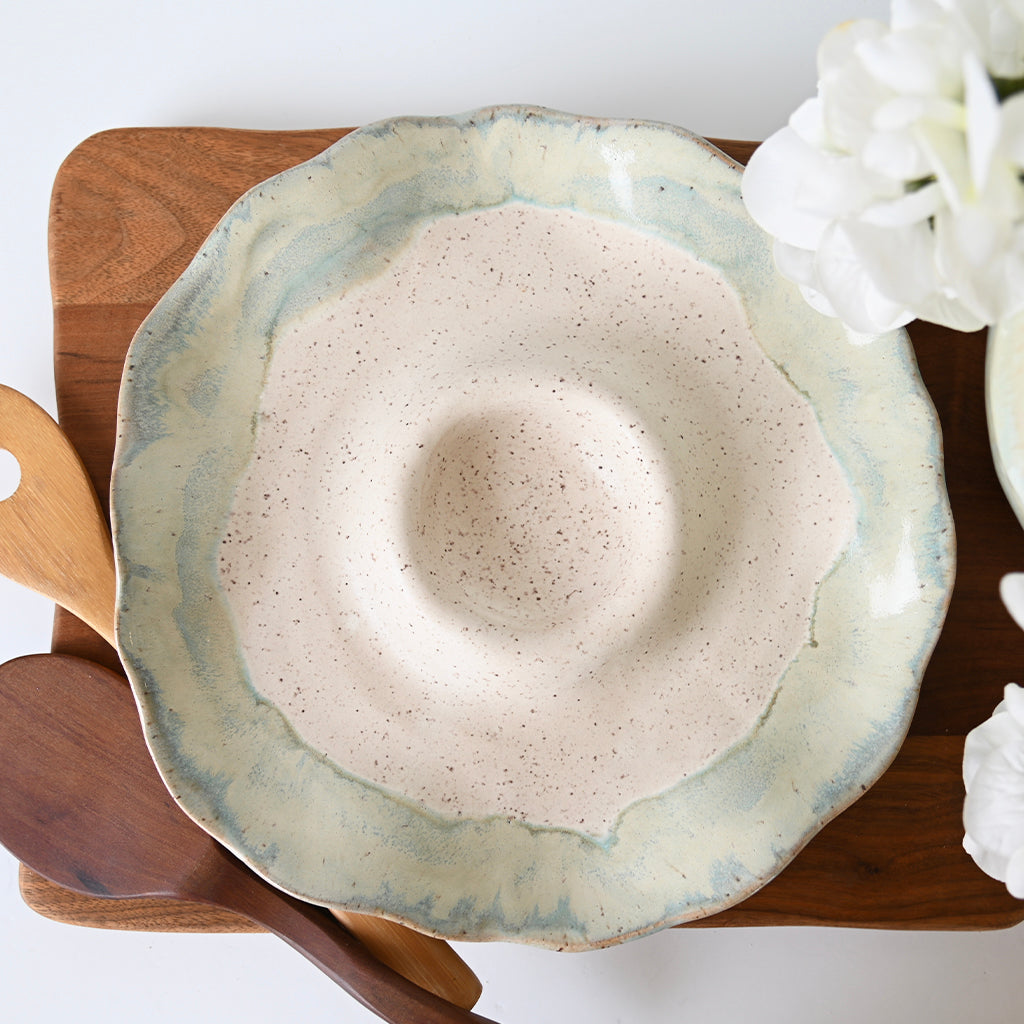 This Small Appetizer Dish Hydrangea is the perfect addition to your hosting collection. With its versatile design, it's great for serving chips, dips, and other appetizers at your next party. Made with expert care, this dish is both durable and stylish. Dishwasher safe for easy cleanup!