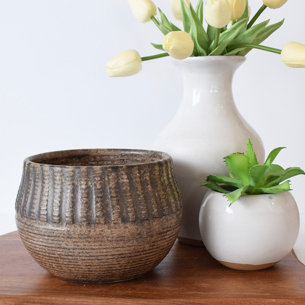 Peter's Pottery's rich earth tones of the Mississippi Delta are captured in the glazes and textures of this pottery, crafted with care by the Woods Brothers of Mound Bayou, MS.