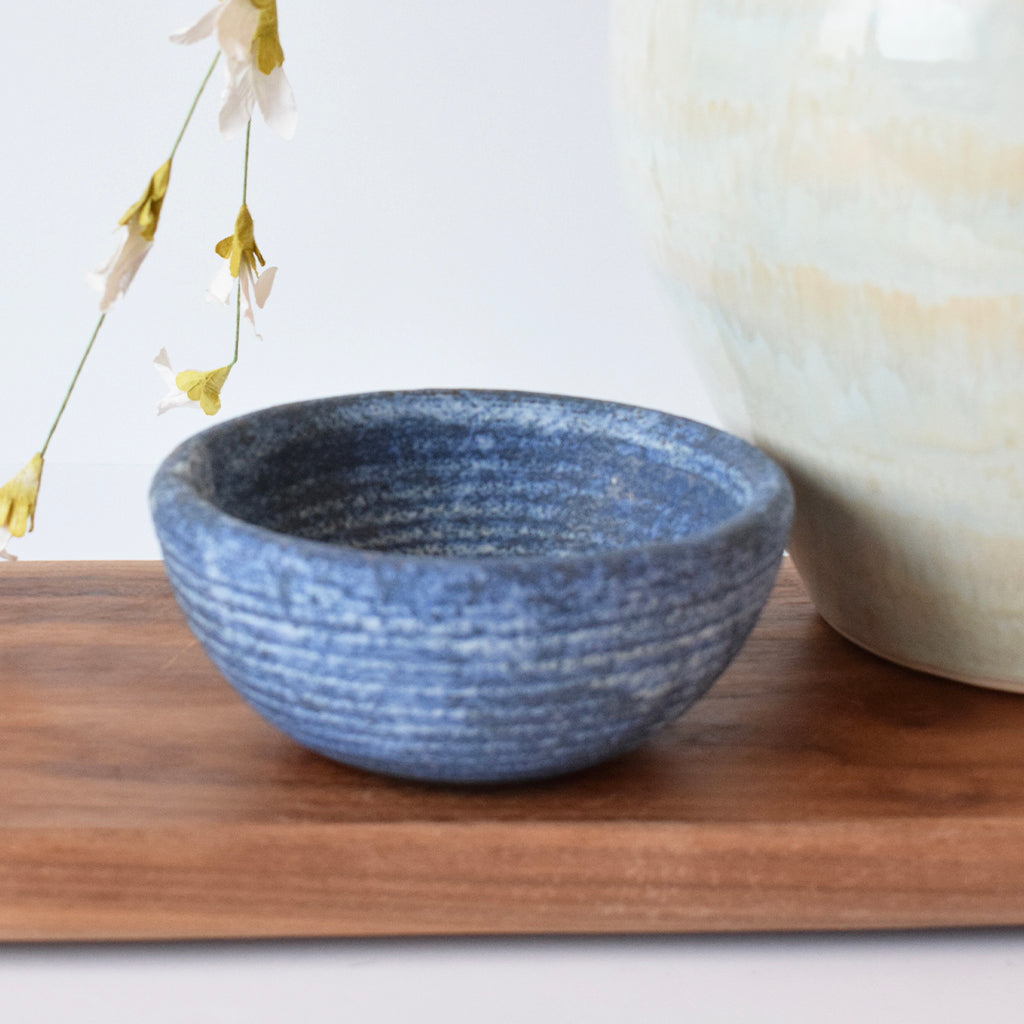 The rich earth tones of the Mississippi Delta are captured in the glazes and textures of this pottery, crafted with care by the Woods Brothers of Mound Bayou, MS. This piece measures 5 inches x 2 inches .