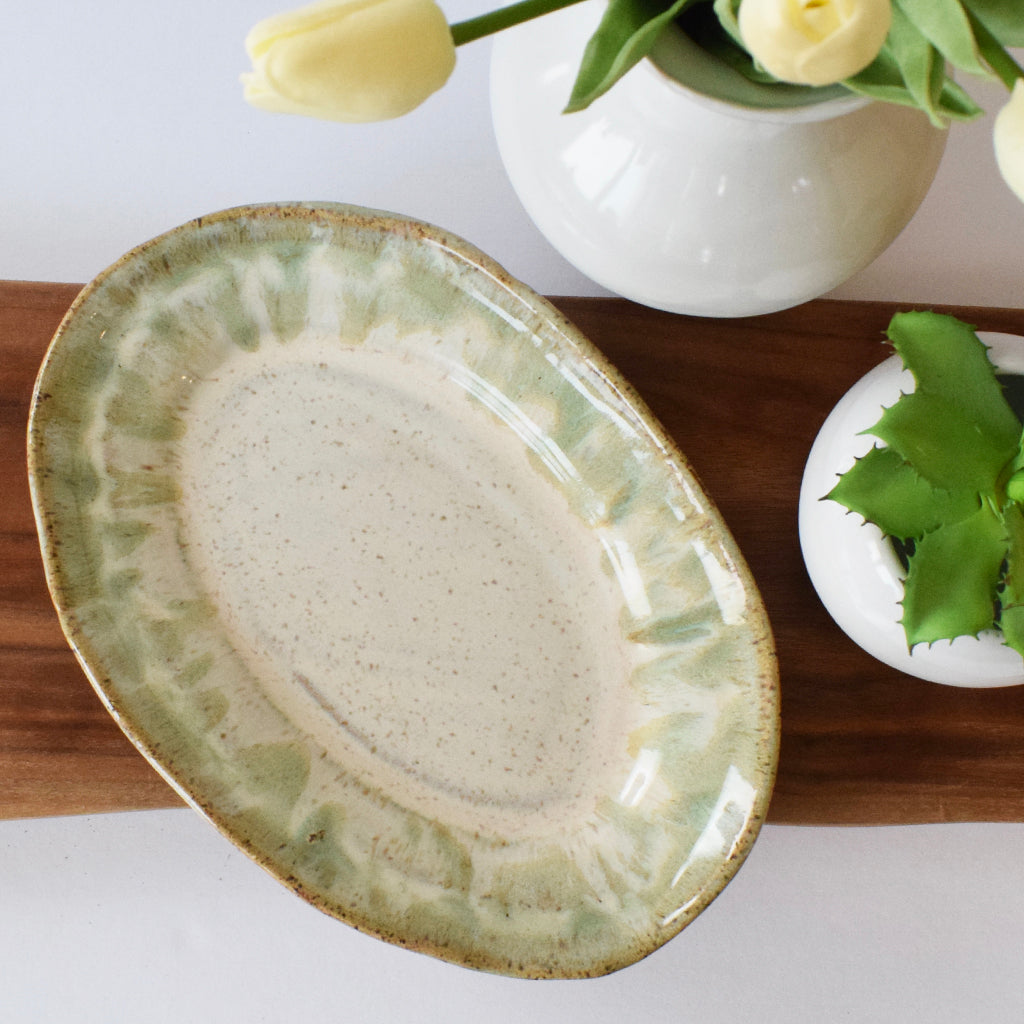 This Small Oval Platter is a great size for serving small side dishes, desserts, or appetizers. We love to use it as a base for the Creamer & Sugar Bowl, too!