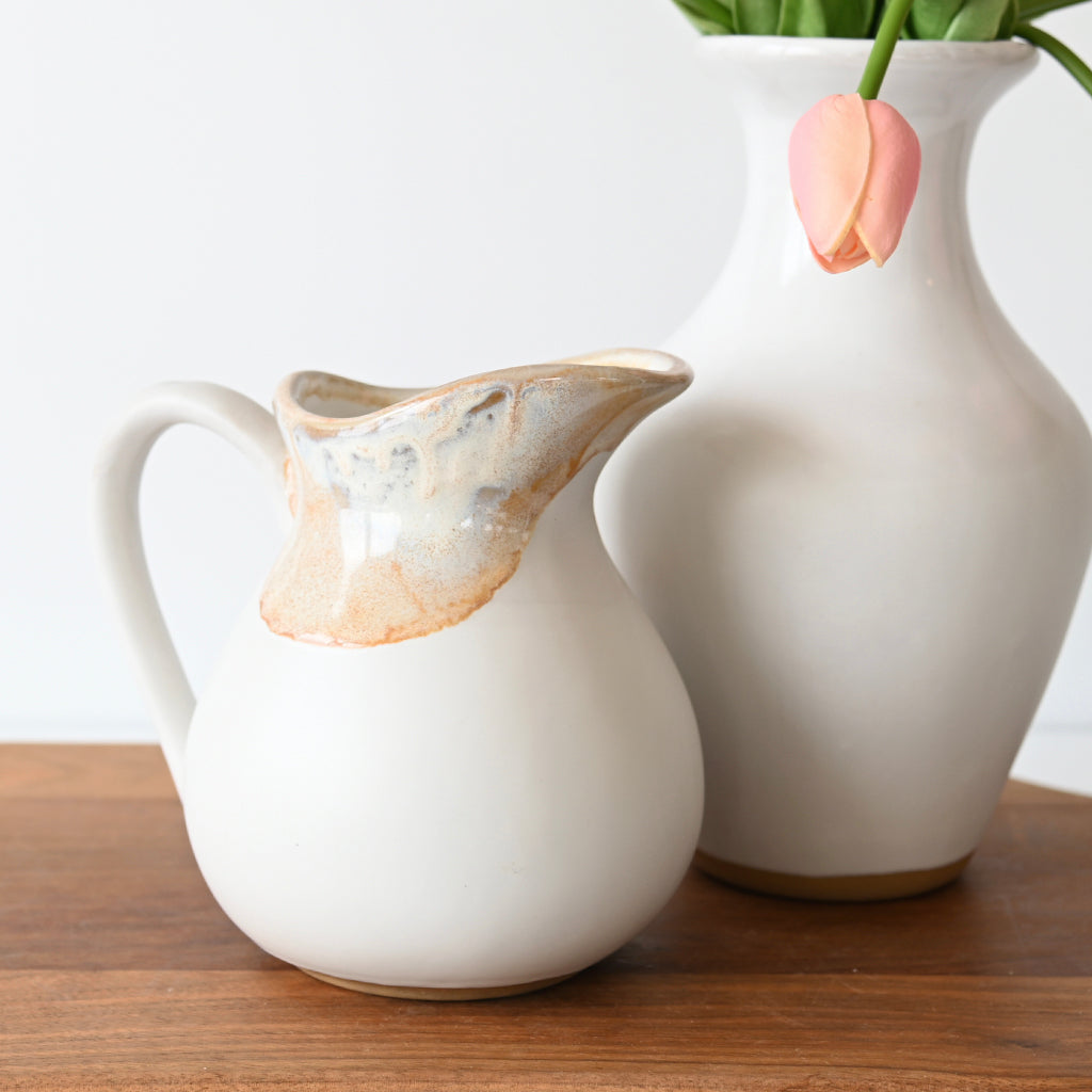Serve up smiles with this charming small pitcher glazed in the beautiful Cottonwood glaze. Its playful colors brighten any table, making every sip feel like a refreshing moment. Perfect for gatherings or everyday use, this pitcher adds a splash of fun and style to your drinkware collection.
