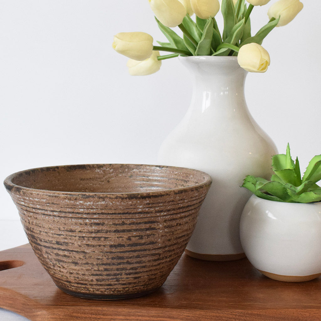 Peter's Pottery's rich earth tones of the Mississippi Delta are captured in the glazes and textures of this pottery, crafted with care by the Woods Brothers of Mound Bayou, MS.