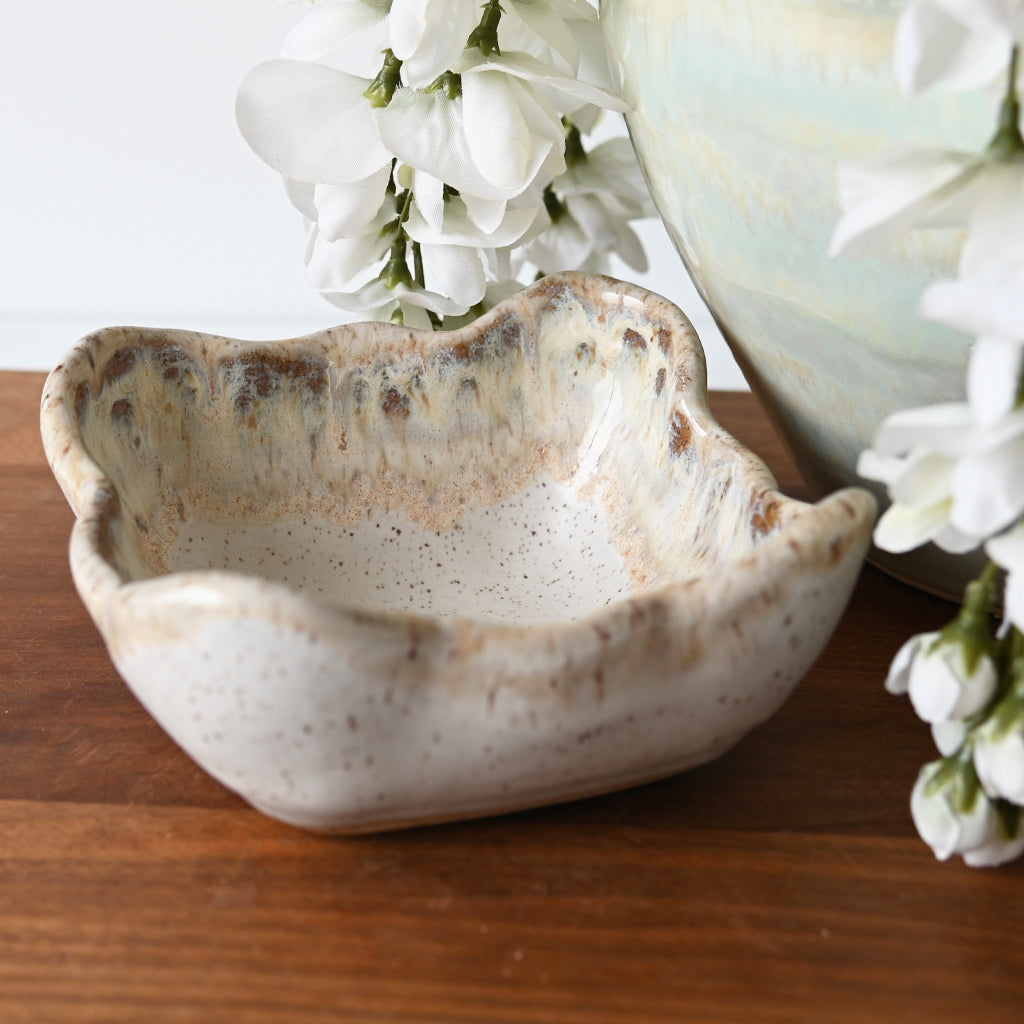 Each unique piece of Etta B Pottery is handcrafted and meticulously hand painted. The beautiful glazes provide a color palate sure to coordinate with any decor. The distressed and antique accents on these exquisite textures makes each piece a treasure. Though similar, no two pieces are just alike.