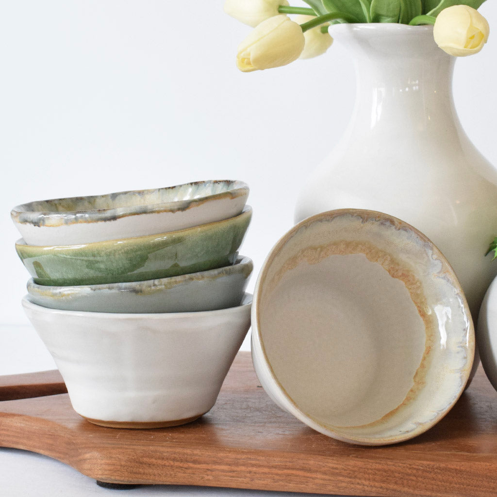Each unique piece of Etta B Pottery is handcrafted and meticulously hand painted. The beautiful glazes provide a color palate sure to coordinate with any decor. The distressed and antique accents on these exquisite textures makes each piece a treasure. Though similar, no two pieces are just alike.