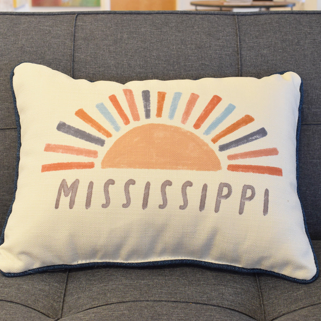 Improve any room with a touch of personality by using the Sunshine Mississippi Rectangle Pillow! These stunning pillows are color-fast, hand-sewn for ultimate quality, and are a budget-friendly way to freshen up your living space. Please note, these pillows are not intended for full outdoor use. Each one measures about 18"x12".