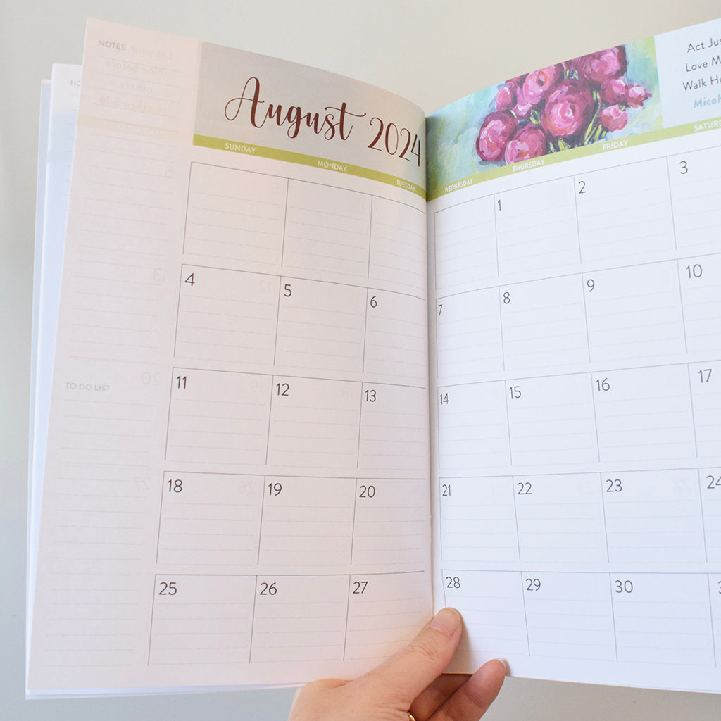 Tay Morgan's 2026 Daily Planner (Size 7 x 10) features artwork and bible verse on front cover and a bible verse on each month. A planner that packs a punch! Enjoy the aesthetic of the art and scriptures on the cover and each month. It's the perfect way to stay organized and gain encouragement from Scripture throughout your year.