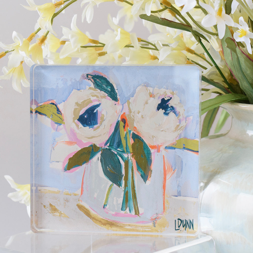 These square blocks are a modern twist on Lauren’s work and add a touch of flair to any table top, bookshelf, bedside table, etc. They also make a fun, unique gift! These free-standing acrylic blocks are printed on 3/4 inch thick acrylic and look great individually, or collect them all!