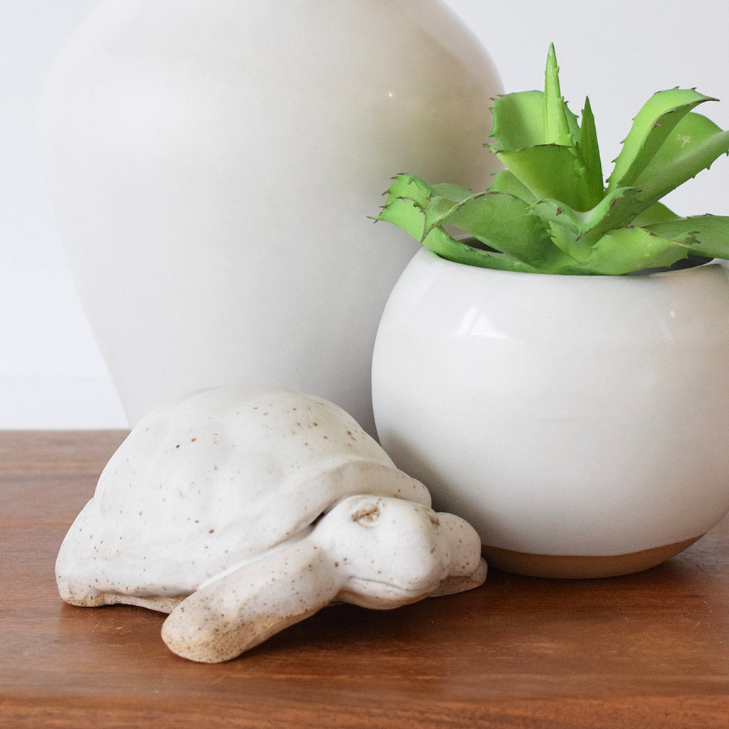 The rich earth tones of the Mississippi Delta are captured in the glazes and textures of this pottery, crafted with care by the Woods Brothers of Mound Bayou, MS. This piece measures 3 inches x 4 inches .