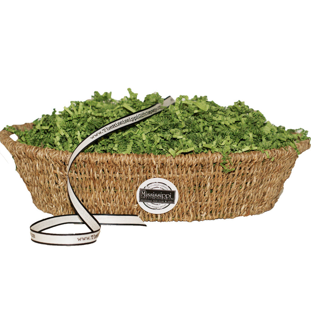 Design your own personalized gift basket with our unfilled large oval basket. Fill it with a selection of their favorite Mississippi products - the basket can hold 10 to 12 items. The basket's dimensions are 16.5"x12"x4.5".