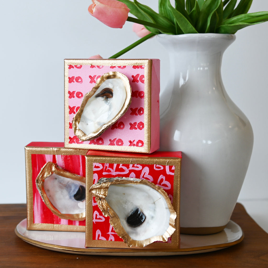 Make your Valentine's Day unforgettable with our Valentine's Oyster Canvas. This hand painted canvas measures 4"x4" and makes for a unique and quirky gift, featuring a gold outlined oyster shell sourced from Pass Christian, MS! Surprise your loved one with this playful and romantic piece of art.